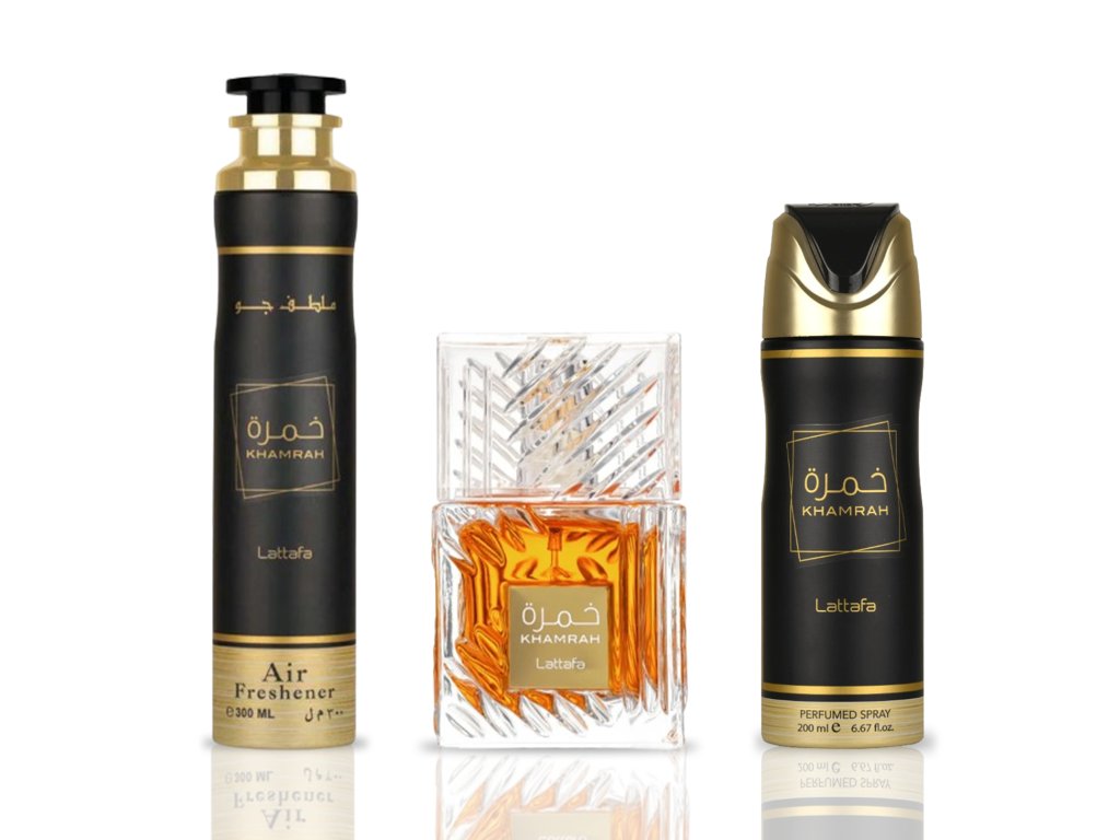 Lattafa Khamrah je skutečným symbolem luxusu a elegance – díky tomuto balíčku si ji můžete vychutnat v každém detailu, od osobní vůně až po atmosféru domova.