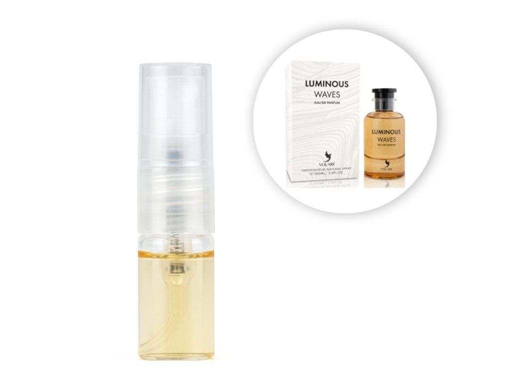 Volaré Luminous Waves je osviežujúca vôňa plná energie. V úvode vás privíta citrusový grapefruit, zázvor a bergamot, ktoré prechádzajú do jemných vodných tónov so šalviou, rozmarínom a pelargóniou. Základ tvorí ambroxan, ambra a labdanum, ktoré dodávajú vôni hĺbku a príjemný teplý dotyk. Perfektná na dni plné pohody a slnečných lúčov.